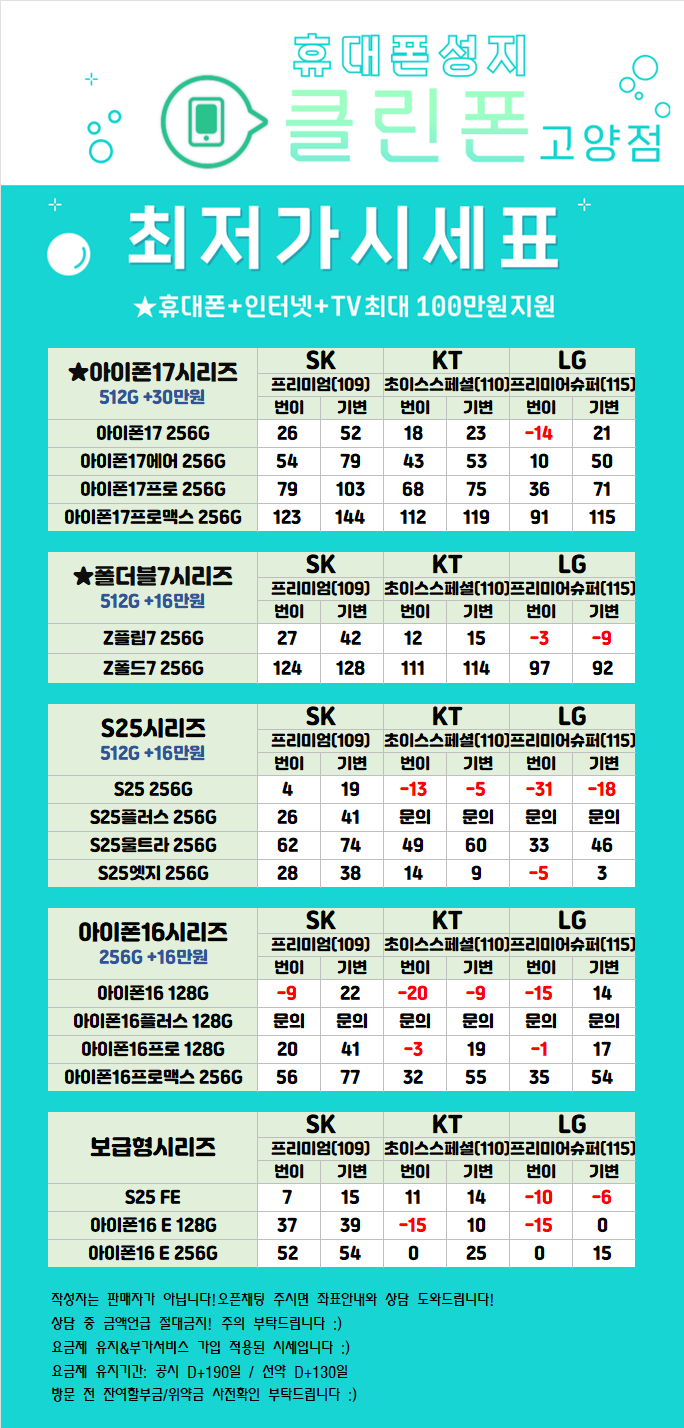 <고양시 1등 성지 > [ 일산 / 원당 / 화정 / 고양 / 행신 / 능곡 / 원흥 / 덕양 / 지축 ] / 25탄 아이폰17탄 폴더블7탄 재고 대량보유 / 반납 X / 당일수령 / 최저가보장 / 인터넷,TV 최대지원 / 재구매율 1위 매장