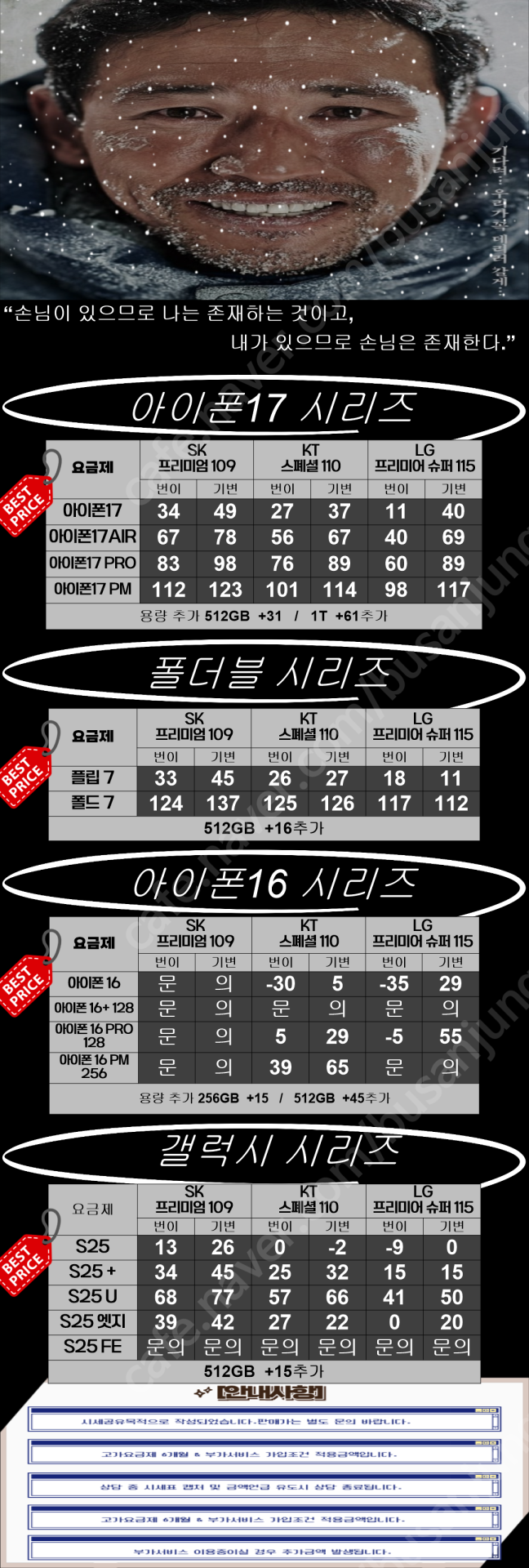 네이버 카페에서 가져온 시세표입니다.