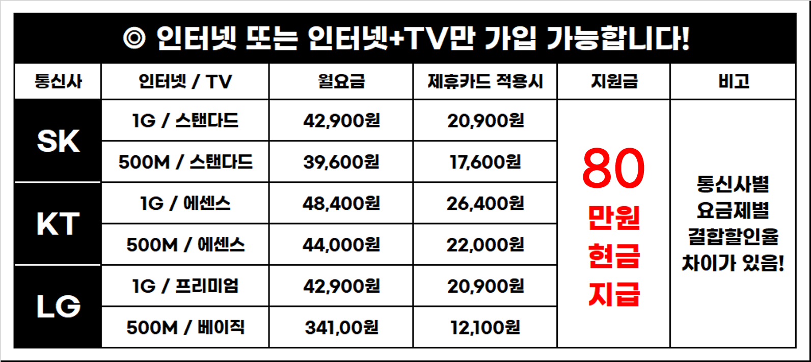 ⊙휴대폰(이동)+인터넷+TV 지원금80