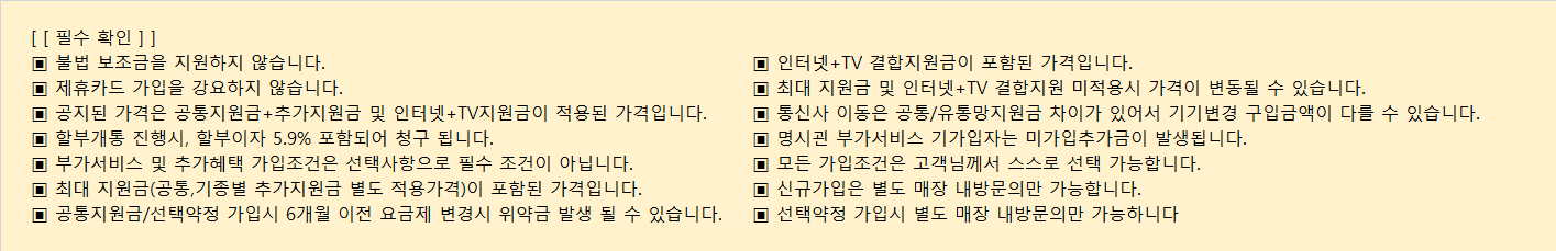 ⊙공통지원금 혜택 개통시 6개월 이후 요금제 변경시 요금제하향 제한 문의 필수입니다.