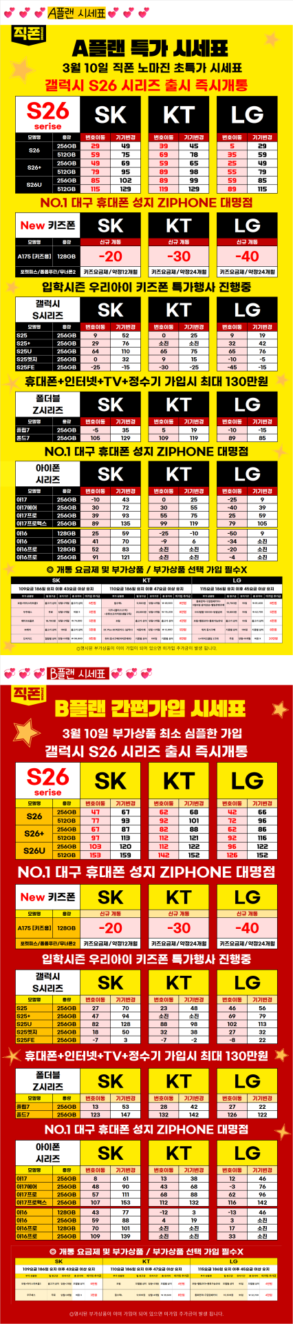 🌈 B플랜 : 부가상품 최소 간편가입 시세표